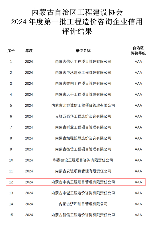 2024-07-3016479 次近期,我公司参加内蒙古自治区工程建设协会组织的“2024年度第一批工程造价咨询企业信用”申报,获得“信用AAA级证书”。我公司成立多年以来,遵循中国工程造价管理协会对造价咨询企…